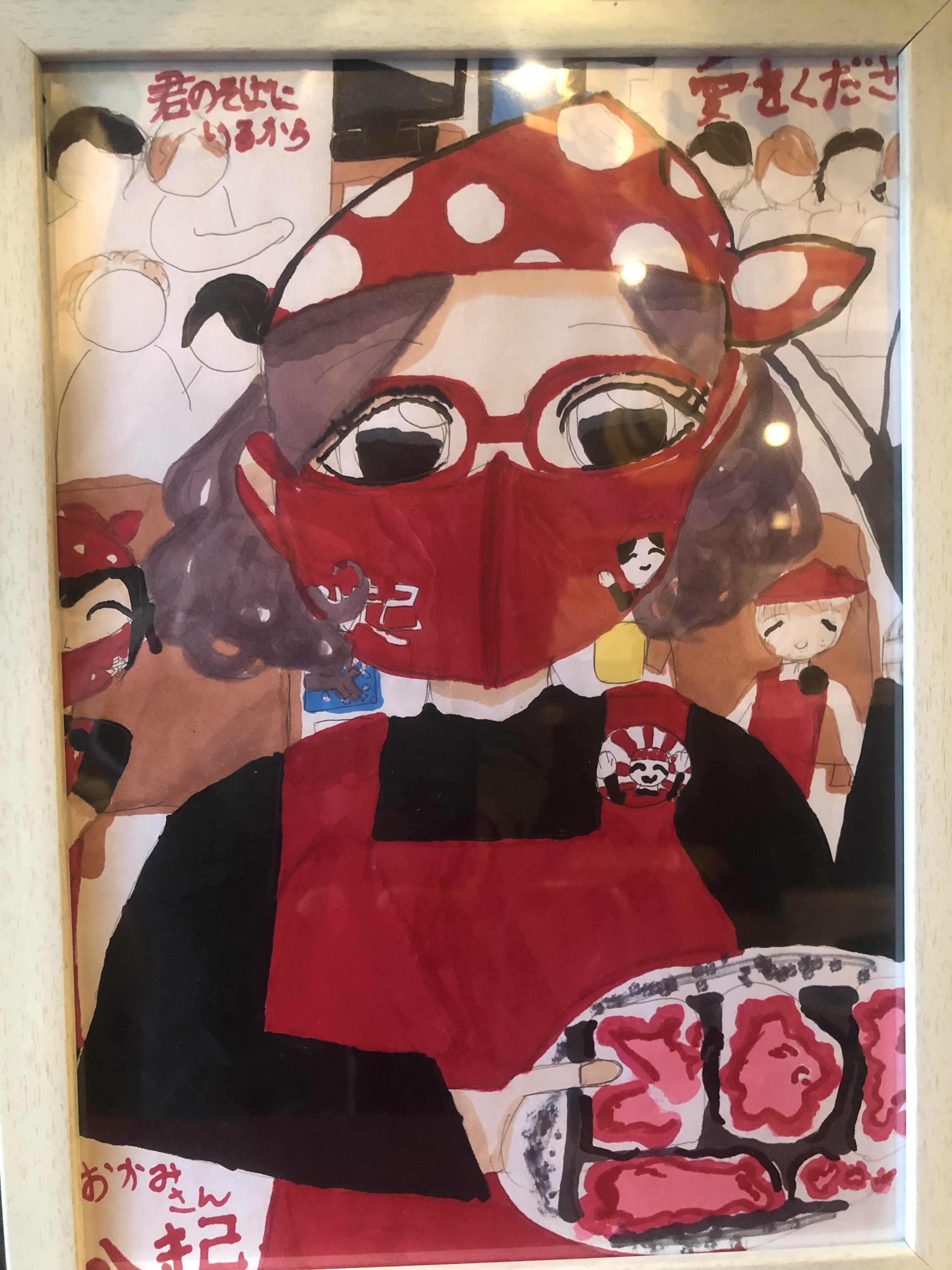 嬉しいことに、以前お店で描いてくれた〝八起のおばちゃんの絵〟を、このコロナ禍の中、見事に仕上げて届けてくれた女の子。