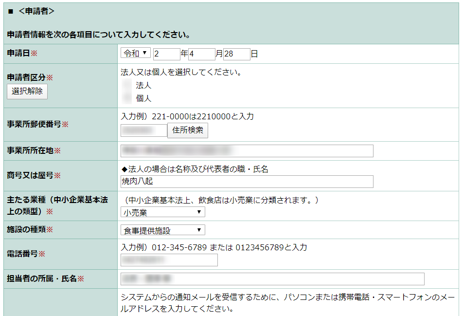 申請手順は基本的には入力欄に情報を入れていくだけです。