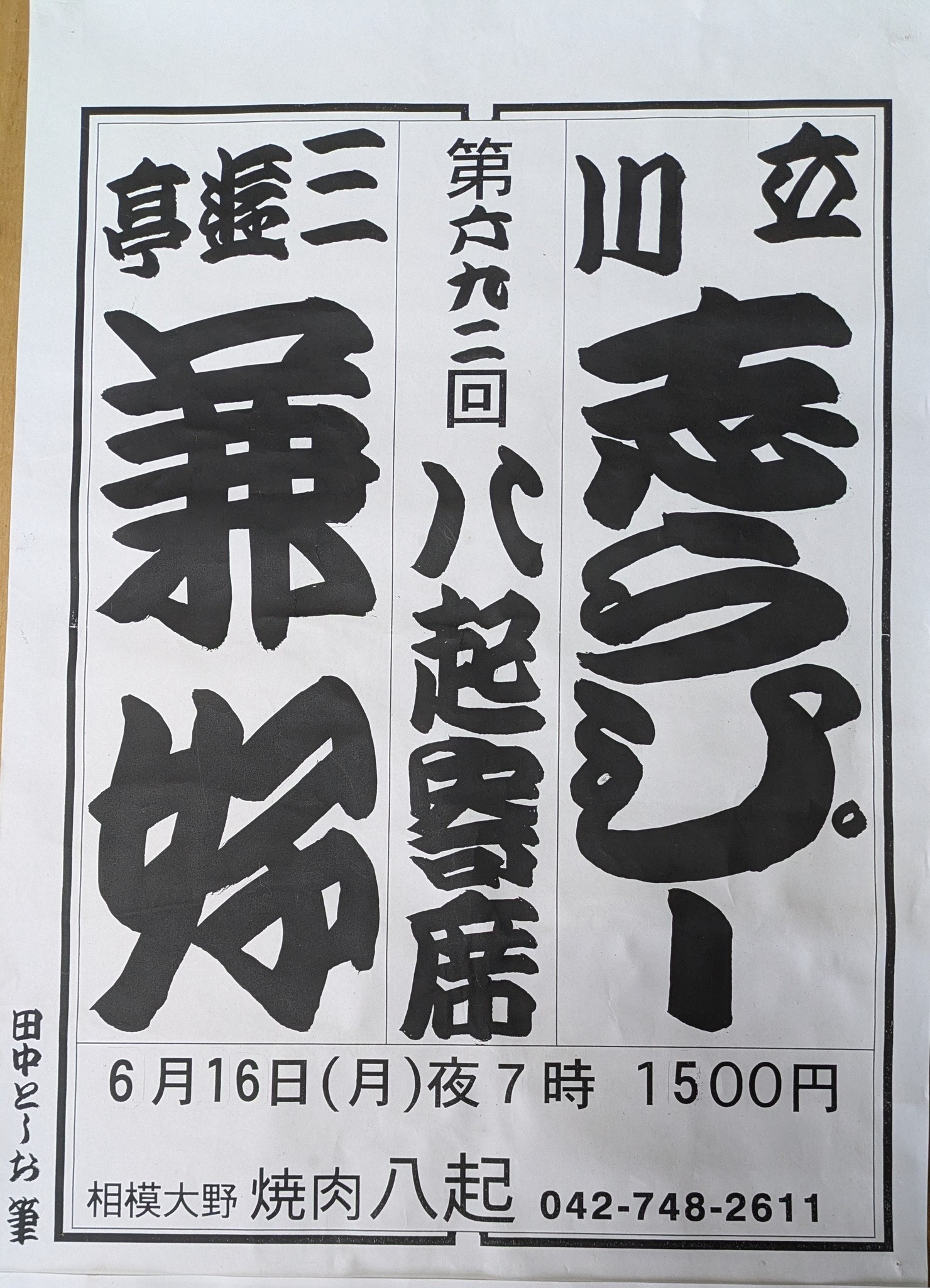 2025-06-11 / 最終更新日 : 2025-06-11 焼肉八起 寄席スケジュール 2025年6月16日(月)八起寄席(お店開催) 第692回八起寄席の開催情報です。 公演日 2025年6月16日(月) 開演 19時 会場 焼肉八起 内容 三遊亭 兼好 立川 志らぴー 料金 自由 1,500円(当日) Follow me! FacebooktwitterHatenaPocket-